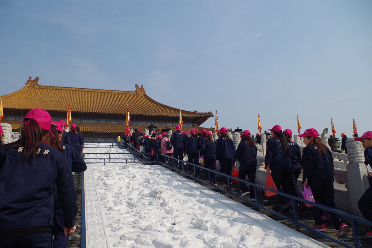 金碧輝煌的帝王宮殿、渾然天成的花園湖泊、富麗堂皇的龍闕鳳檐、氣勢(shì)恢弘的皇宮廣場(chǎng)。塵土飛揚(yáng)的八旗馬戰(zhàn),紫禁大典描繪了歷史的詩意與失意……在明清宮苑內(nèi),漫步在古風(fēng)濃郁的仿照故宮1:1建造的明清宮苑中,看到熟悉的影視場(chǎng)景和人物造型,員工們?cè)诒M情玩賞之余,紛紛合影留念,營(yíng)造了和諧融洽的集體氣氛。在參觀的過程中員工們一邊交流相關(guān)的歷史知識(shí),一邊相互鼓勵(lì)、扶持,增進(jìn)了感情交流和團(tuán)隊(duì)的凝聚力。